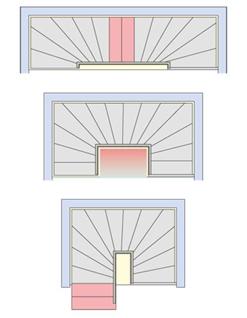 Selbst Fachleute sind sich manchmal nicht einig, wo die halbgewendelte Treppe endet und die zweiviertelgewendelte beginnt. Für uns soll dies unerheblich sein: Jede Treppe, die sich vom Antritt bis zum Austritt um 180 Grad dreht, nennen wir halbgewendelt.