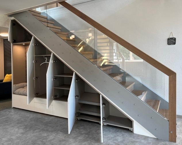 Sie finden original Holztreppen zum Anschauen, Anfassen und Ausprobieren. Ebenso können Sie sich ein Bild der Ausstattungsdetails für Treppen und verschiedenen Holzarten machen.