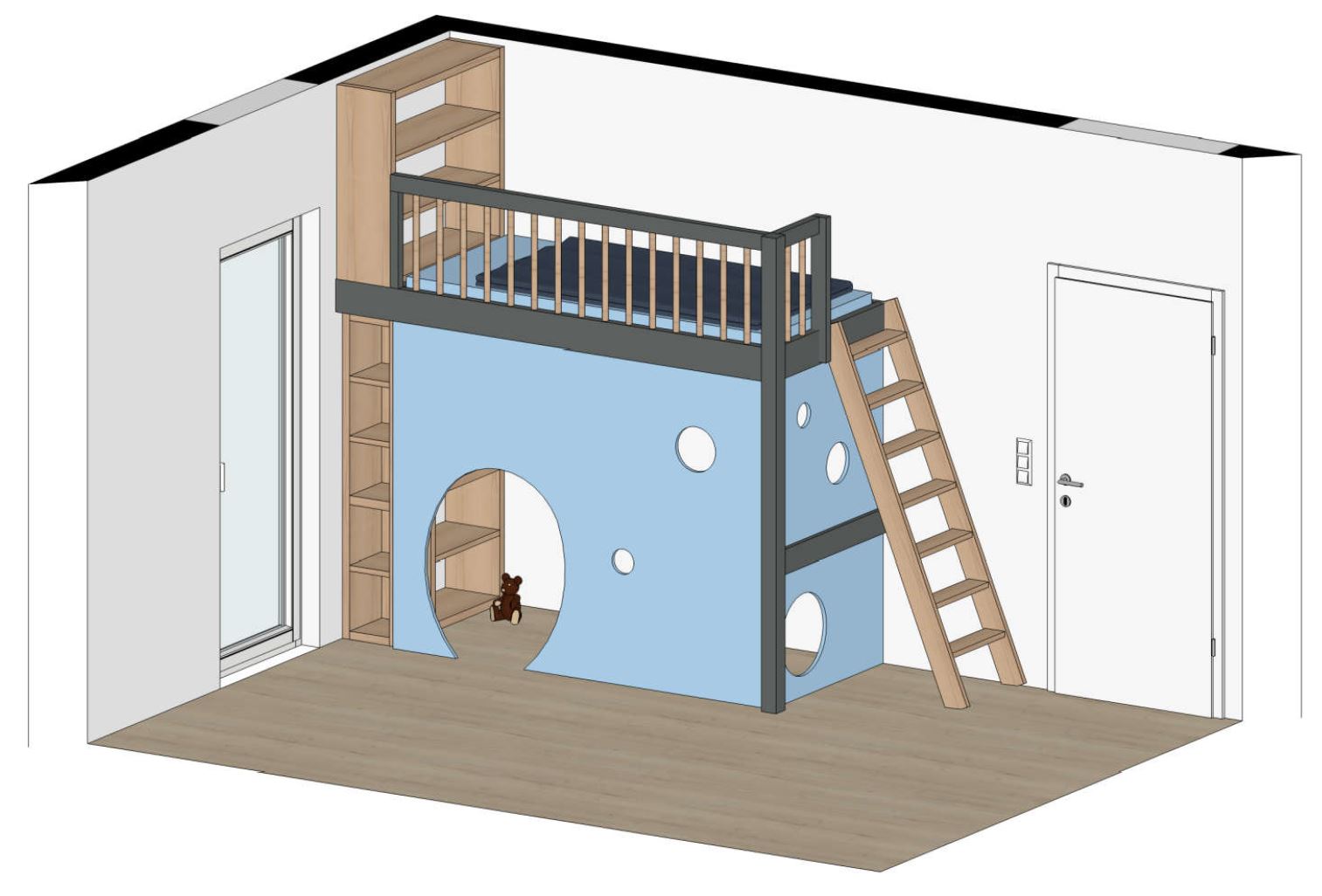 Jedes Hochbett wird von uns mit Liebe zum Detail geplant und gefertigt, um sowohl Funktionalität als auch Sicherheit und Stil zu gewährleisten. Die Lösungen können flexibel geplant werden, so dass sie mit Ihren Kindern "mitwachsen": Ein Spielbereich kann im Laufe der Zeit in einen Schul-Schreibtisch oder eine gemütliche Sofa-Ecke umgebaut werden, wenn sich die Wünsche und Vorlieben ändern. Lassen Sie uns gemeinsam eine kreative Lösungen entwickeln und einen einzigartigen Raum schaffen.
