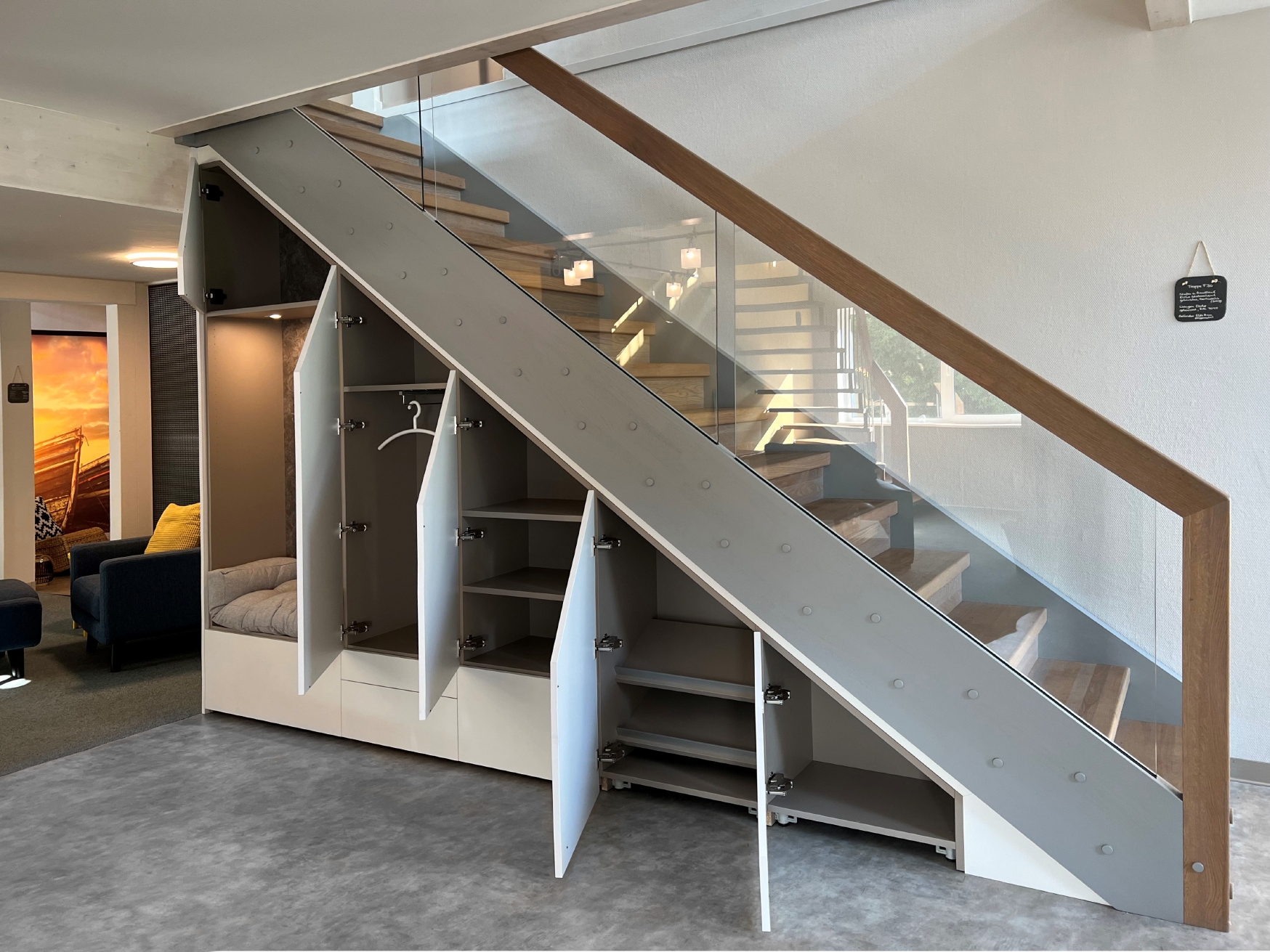 Nutzen Sie den ungenutzten Raum unter Ihrer Treppe optimal mit einer maßgeschneiderten Lösung.