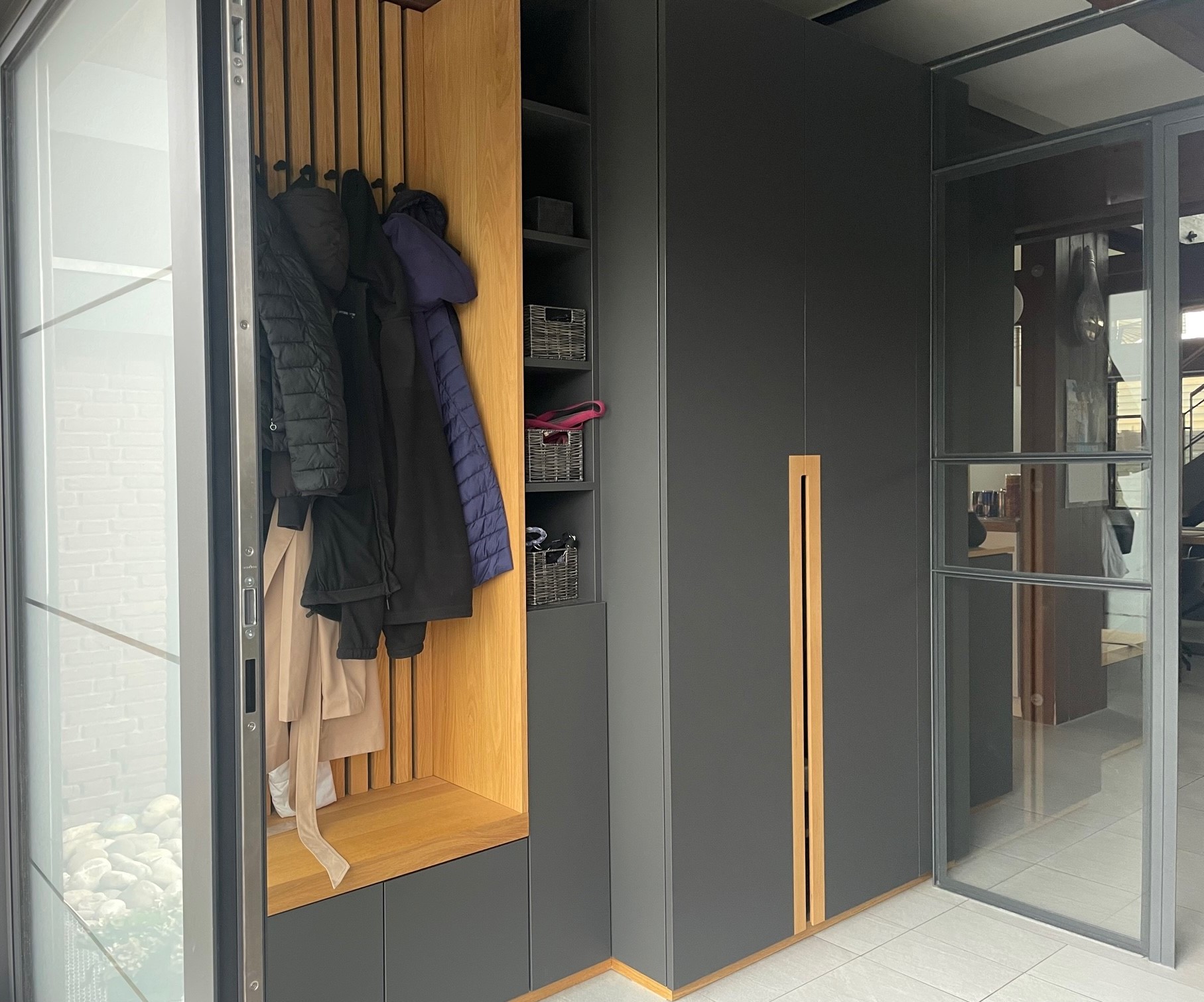 Unsere Reise begann unter einer Treppe, in einem scheinbar ungenutzten Raum. Dort, wo einst Staub und Gerümpel lagerten, entstand die erste maßgefertigte Stauraumlösung. Diese inspirierte uns, weiter zu denken und neue Wege zu finden, wie wir auch in anderen Bereichen des Hauses mehr Platz und Ordnung schaffen können.