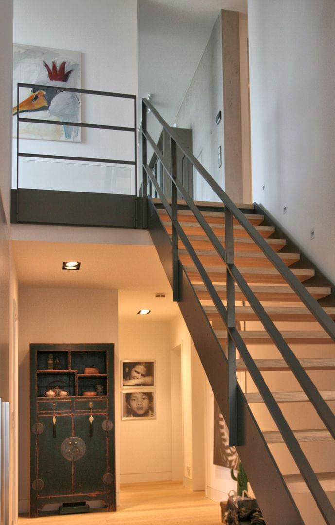 Eiche weiß geölt & Brüstungsgeländer eingespanntes Glas