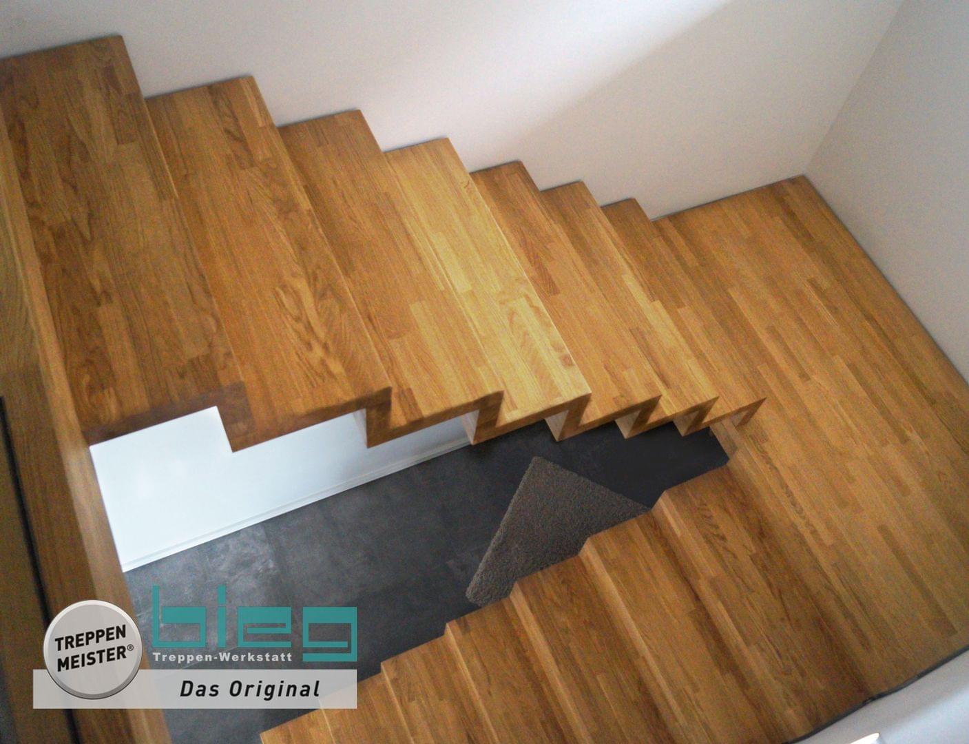 Stufen + Podest Eiche keilgezinkt, geräuchert + geölt