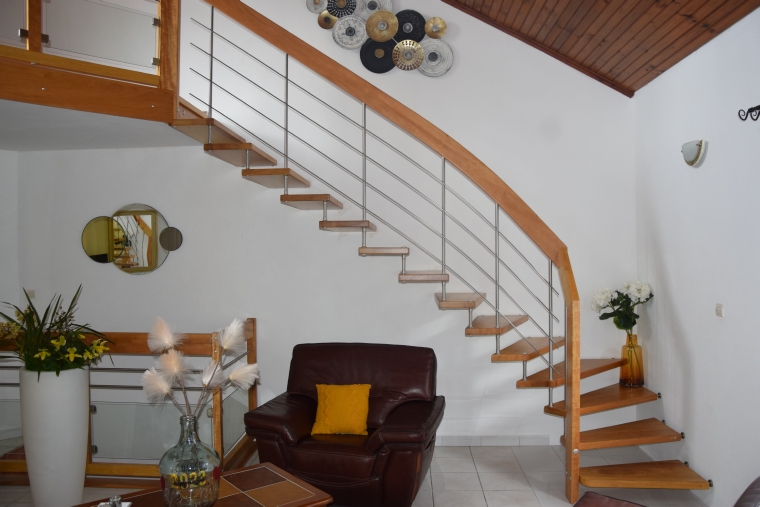 Escalier suspendu quart tournant en bois Treppenmeister-Viva 700d